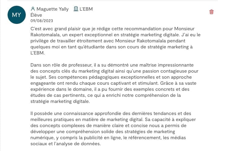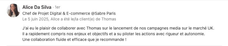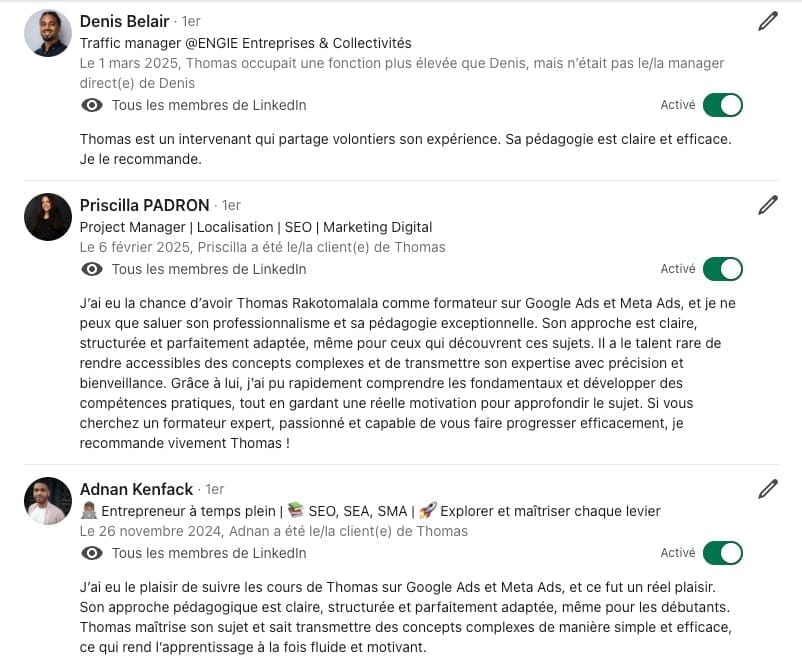 Ici, je vous partage les avis de futurs consultants en e-commerce et en acquisition qui ont suivi ma formation :